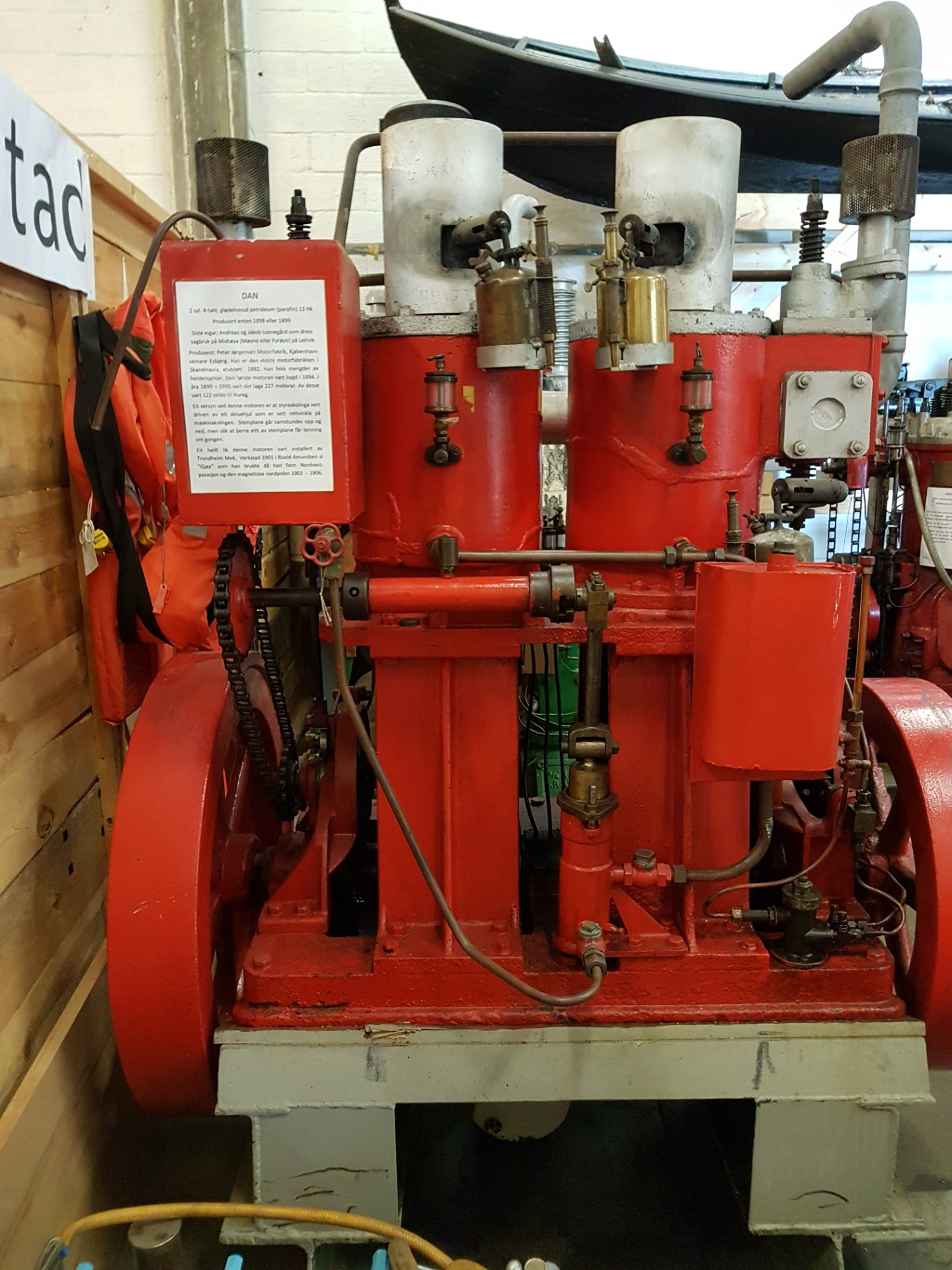 Den eldste motoren i samlinga er ein DAN 13hk og to sylindra, frå 1898. Han er restaurert og kan startast.